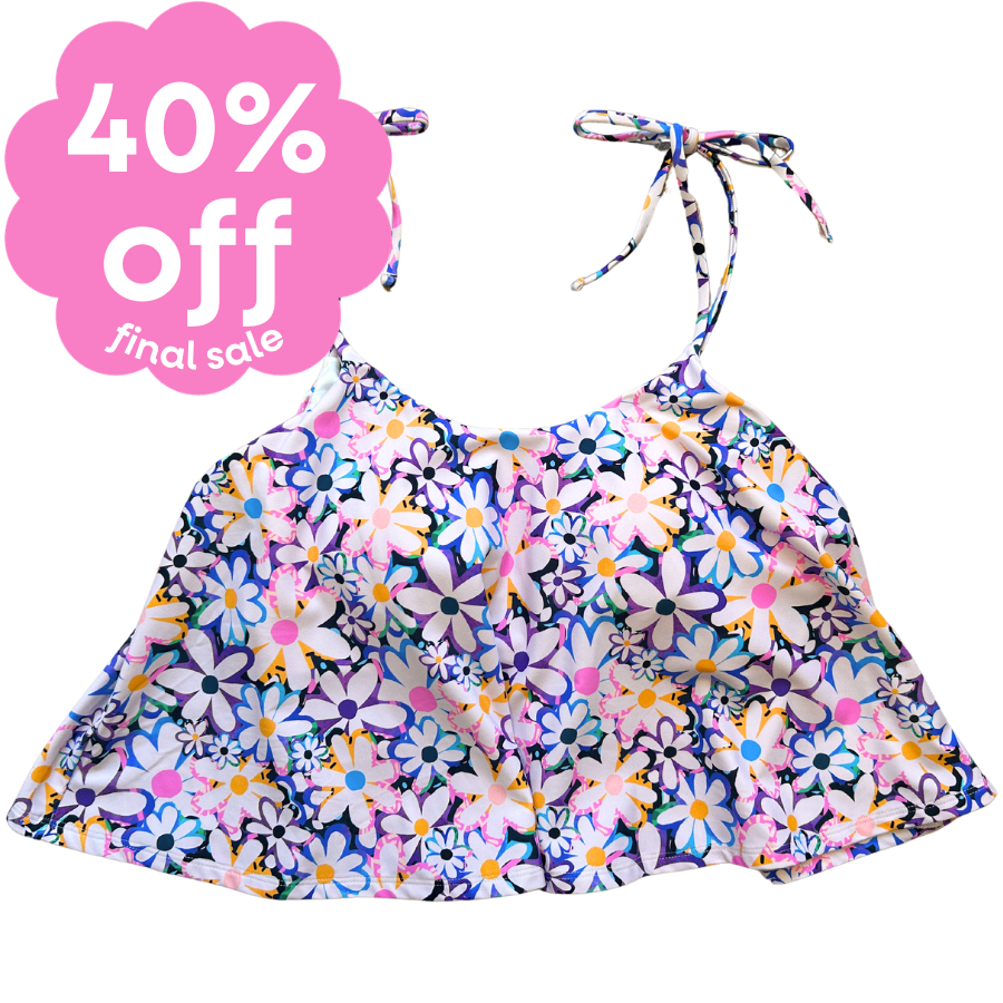 Frilly, flattering, feminine and fun: make a statement wearing our beautiful Swing Top! Comfort is key and you will find any excuse to wear this top - a super flattering shape for all body types. With thin, adjustable shoulder ties for the perfect fit and a deep scoop neckline, the hardest decision will be which bottom style to mix ‘n match this playful top with!